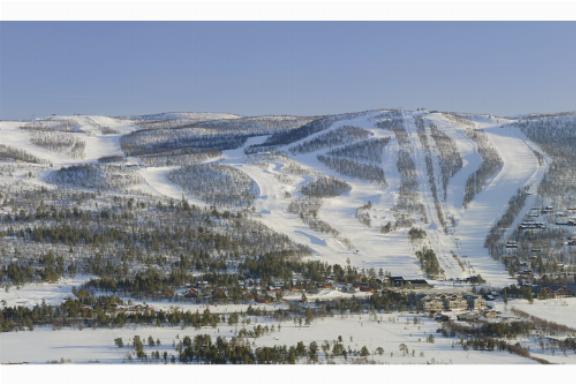 Съемка на камеру на шлеме спуска по 14 склону на горнолыжном курорте Trysil.